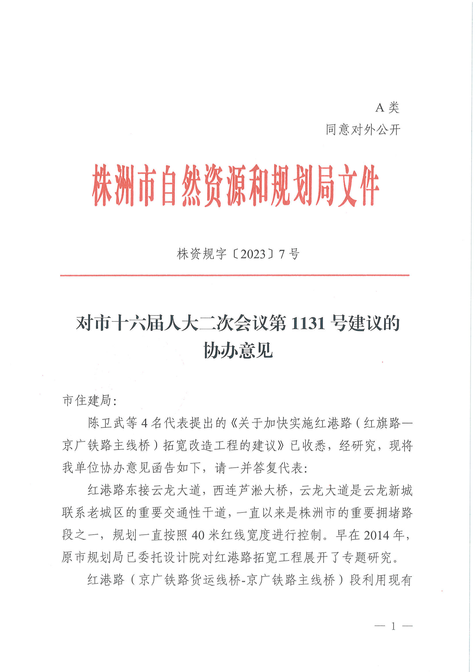 株资规字〔2023〕7号 对市十六届人大二次会议第1131号建议的协办意见
