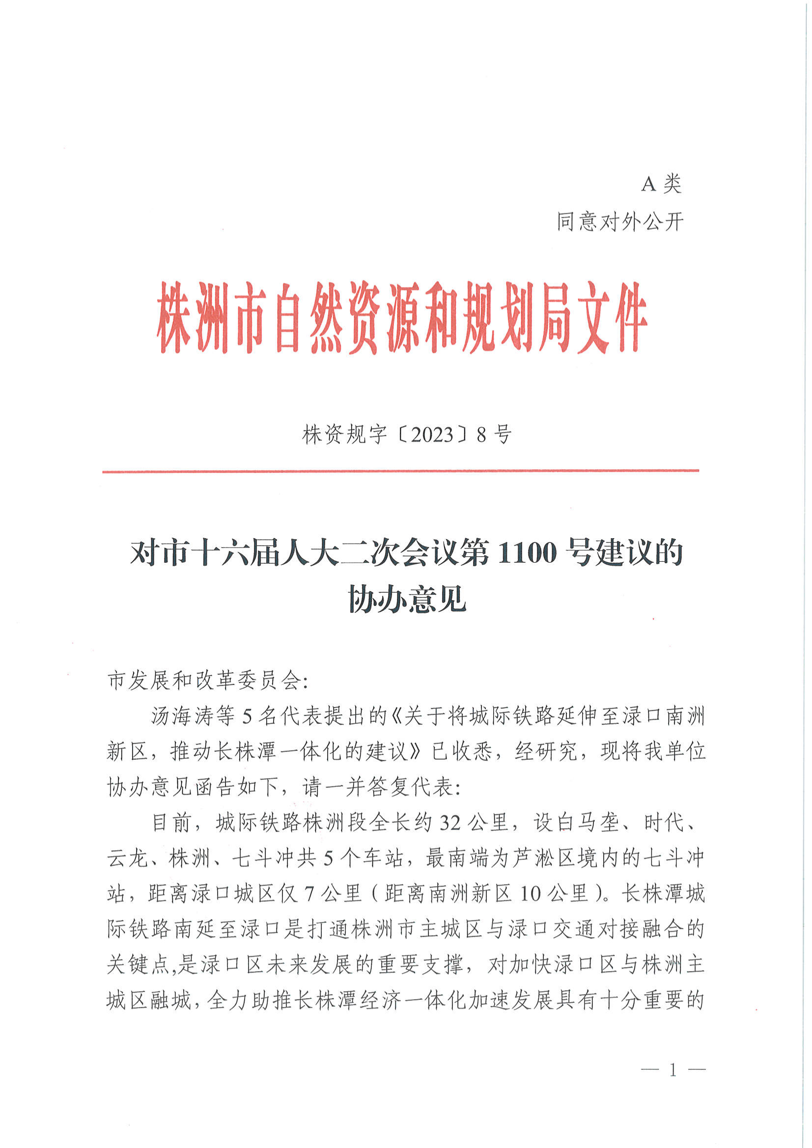 株资规字〔2023〕8号 对市十六届人大二次会议第1100号建议的协办意见