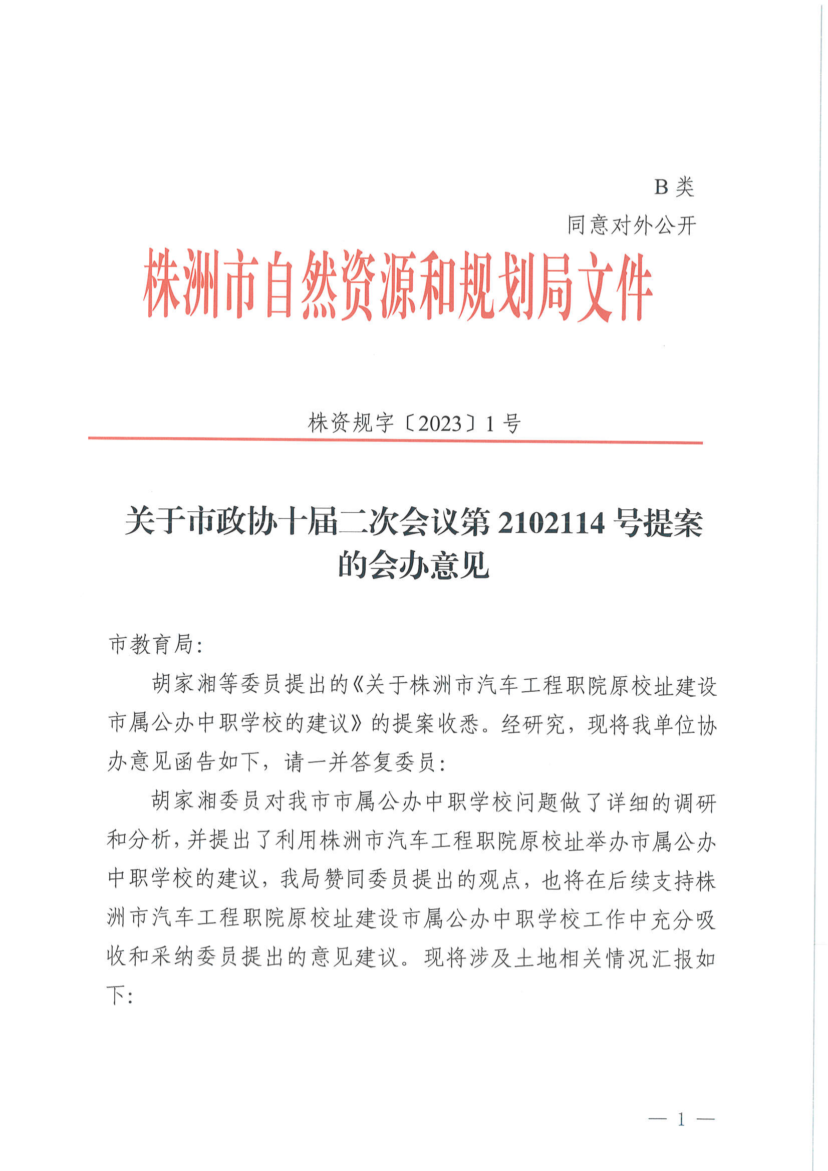 株资规字〔2023〕1号 关于市政协十届二次会议第2102114号提案的会办意见