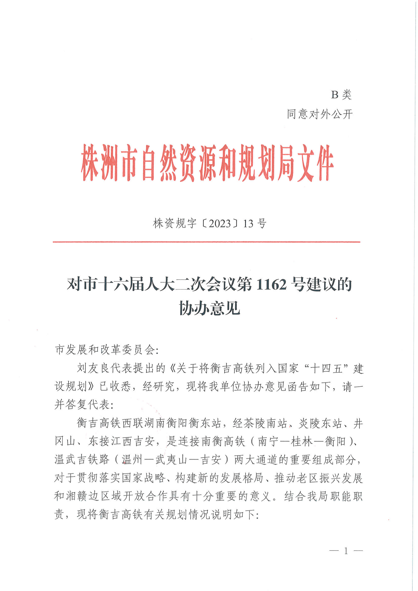 株资规字〔2023〕13号 对市十六届人大二次会议第1162号建议的协办意见