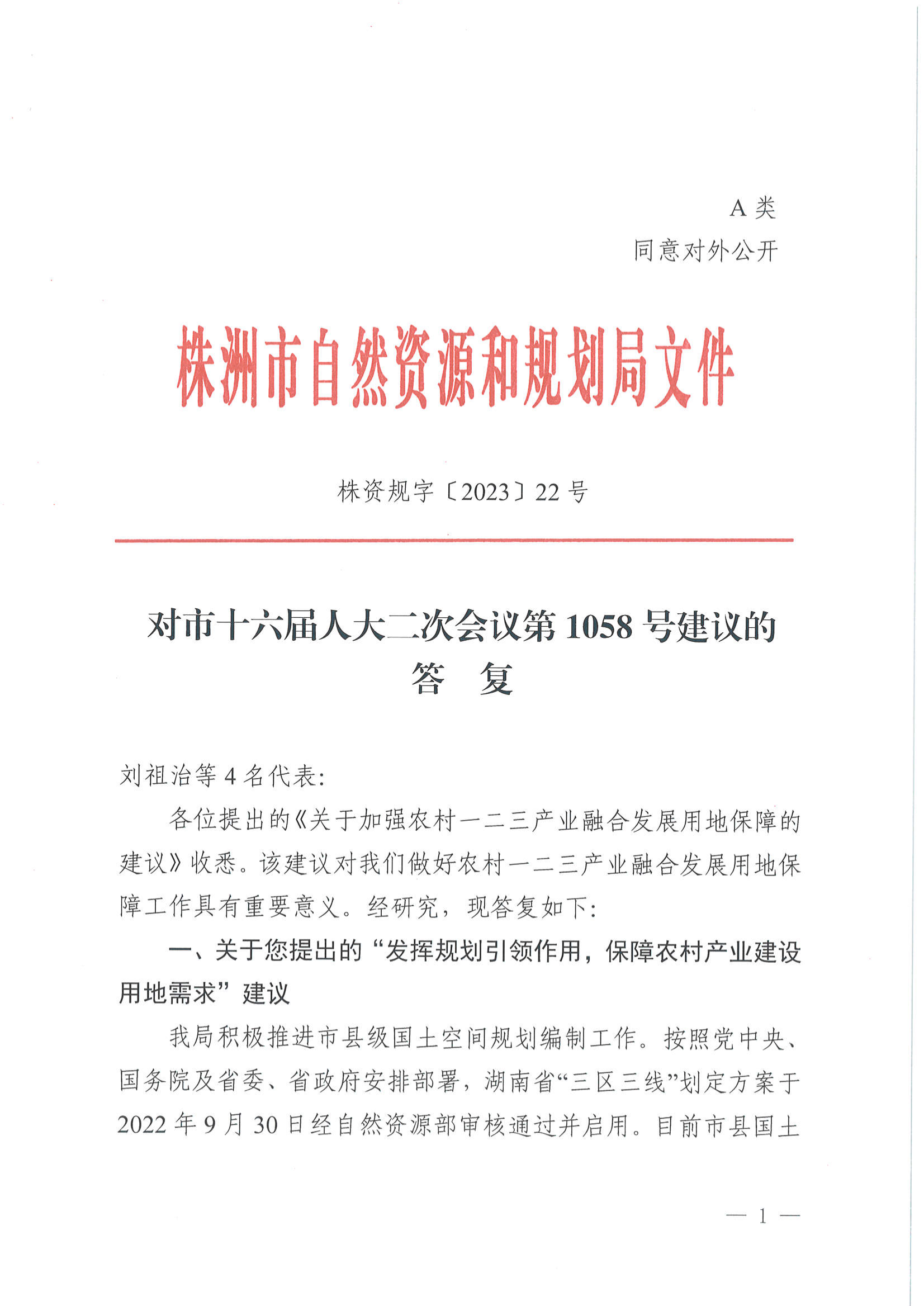 株资规字〔2023〕22号 对市十六届人大二次会议第1058号建议的答复