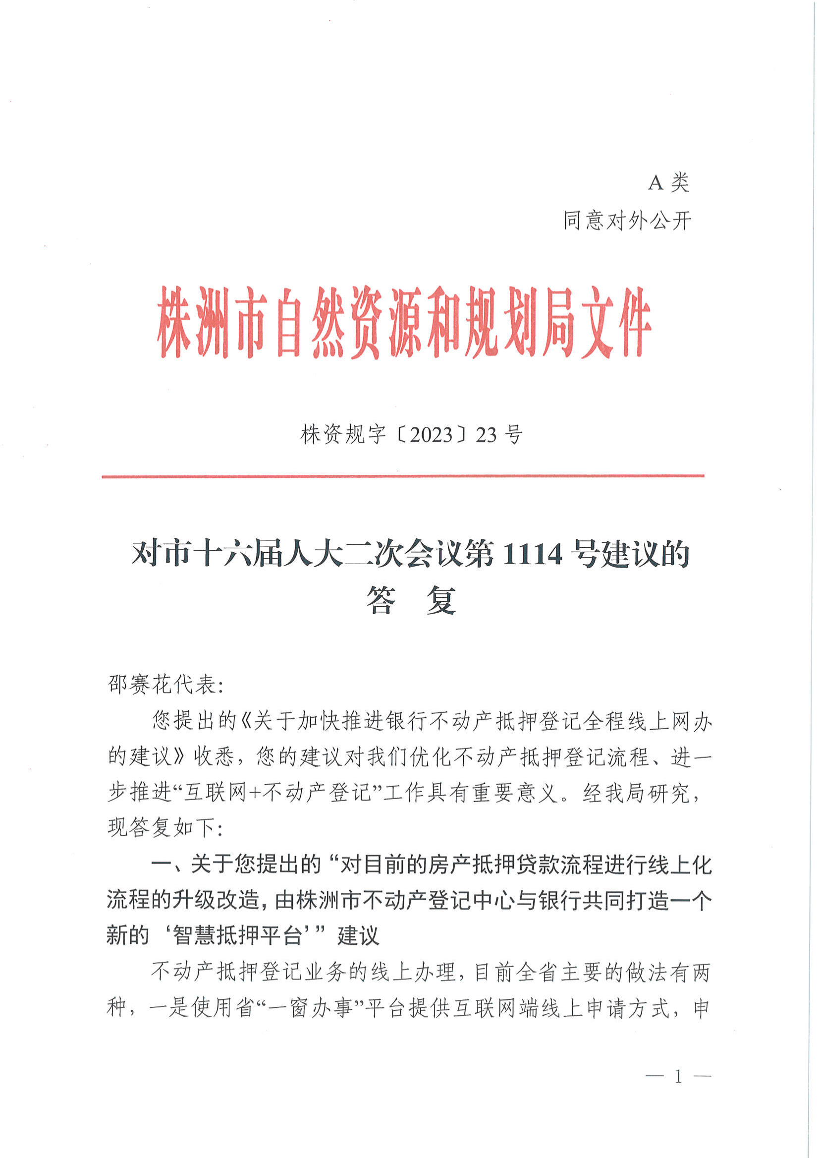 株资规字〔2023〕23号 对市十六届人大二次会议第1114号建议的答复