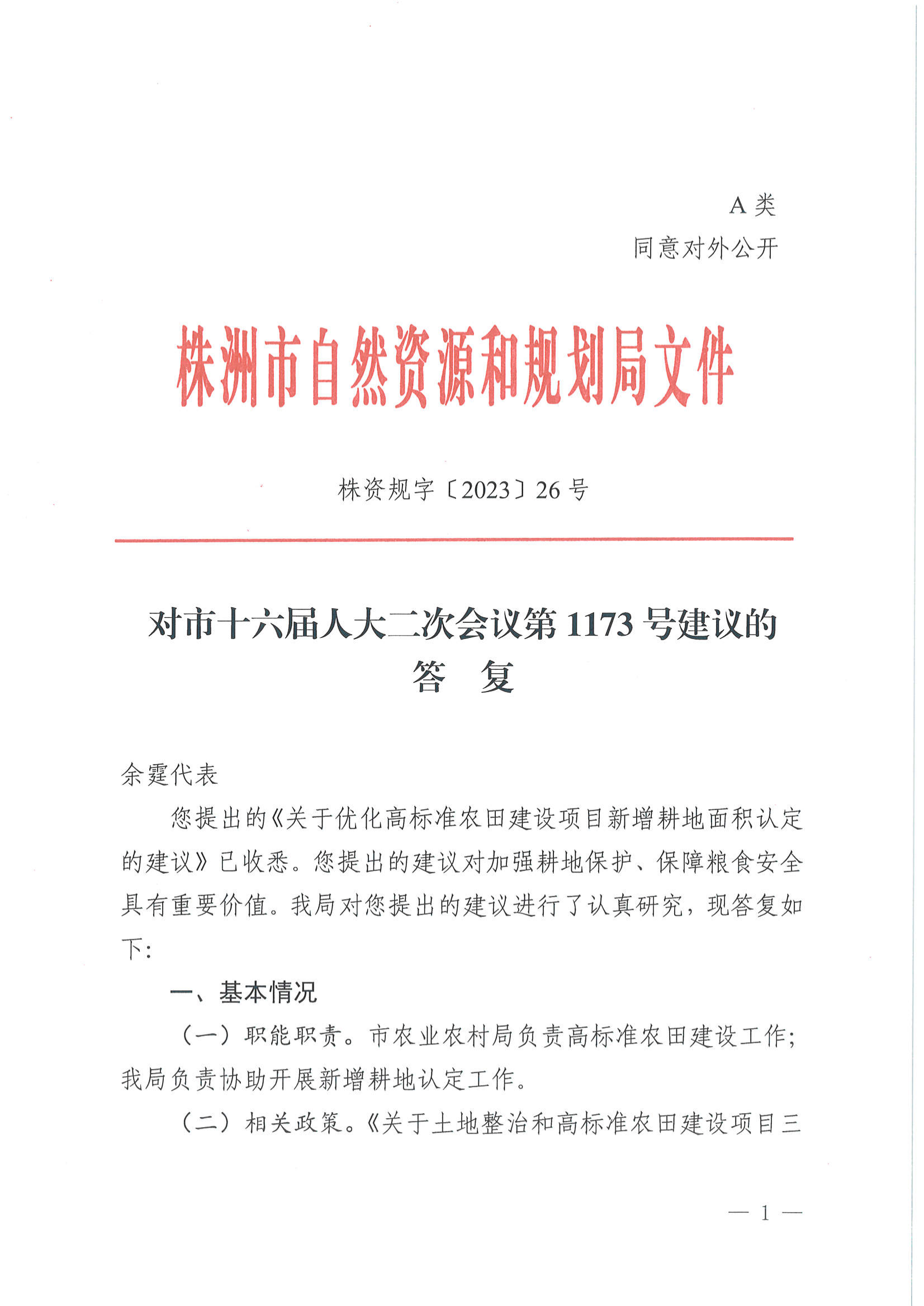 株资规字〔2023〕26号 对市十六届人大二次会议第1173号建议的答复