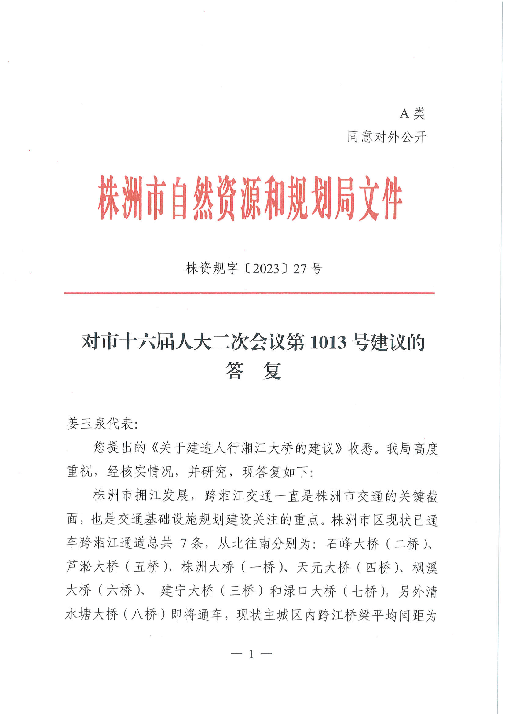 株资规字〔2023〕27号 对市十六届人大二次会议第1013号建议的答复