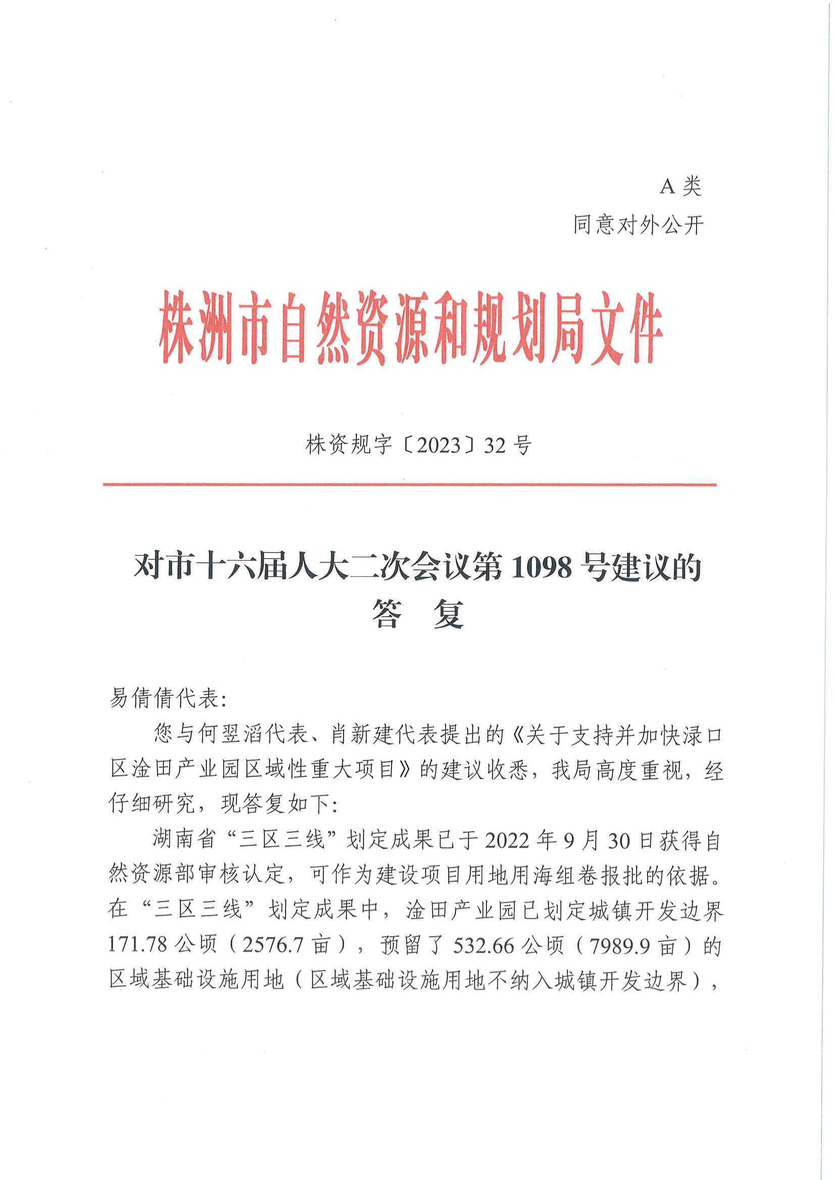 株资规字〔2023〕32号 对市十六届人大二次会议第1098号建议的答复