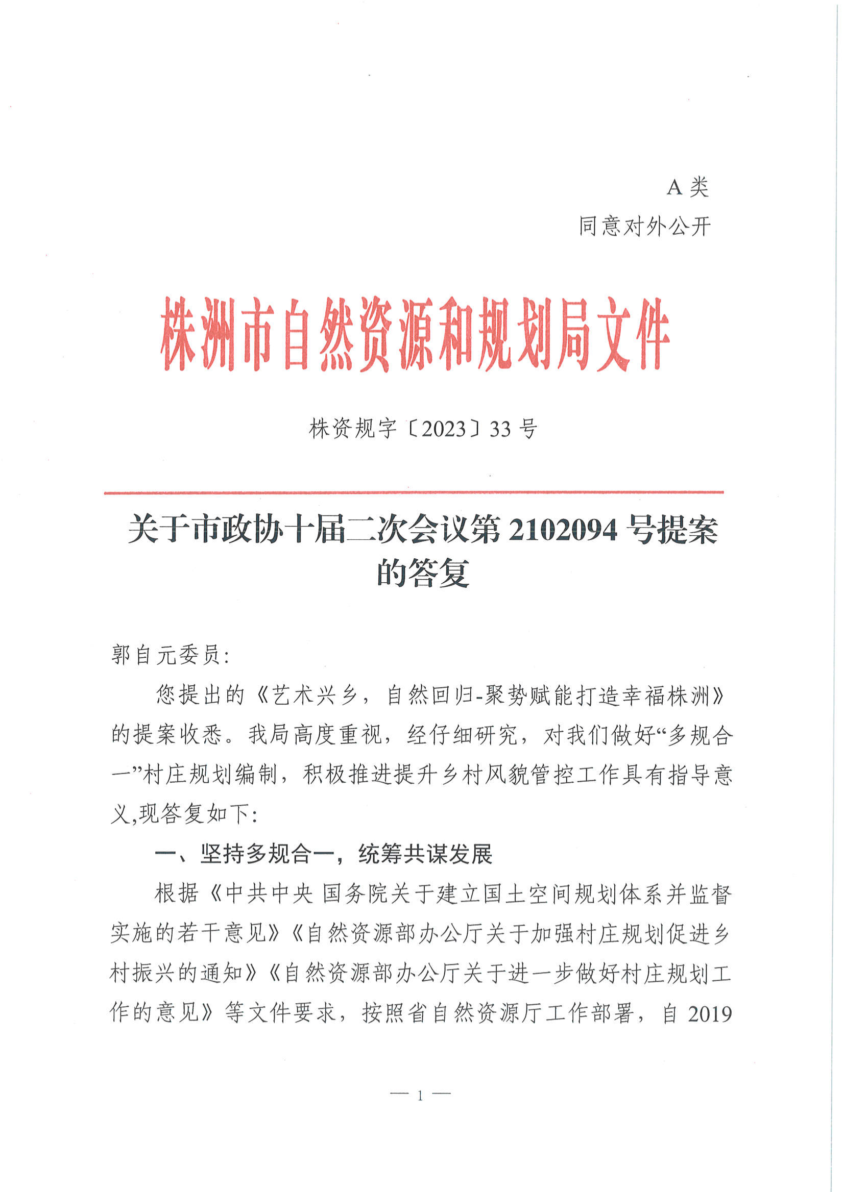 株资规字〔2023〕33号 对市政协十届二次会议第2102094号提案的会办意见