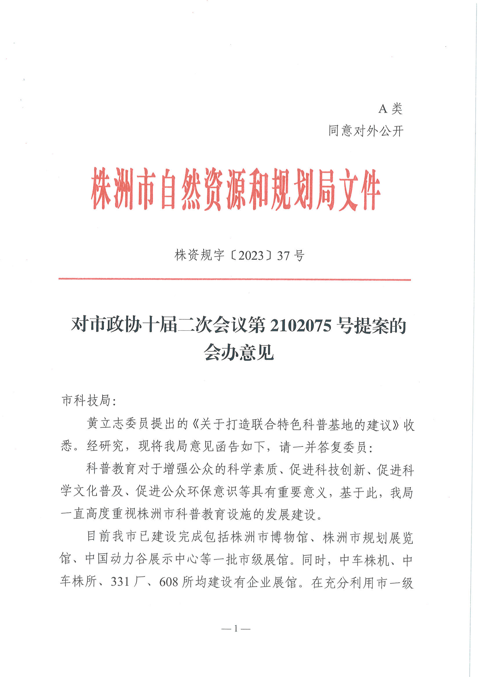 株资规字〔2023〕37号 对市政协十届二次会议第2102075号提案的会办意见