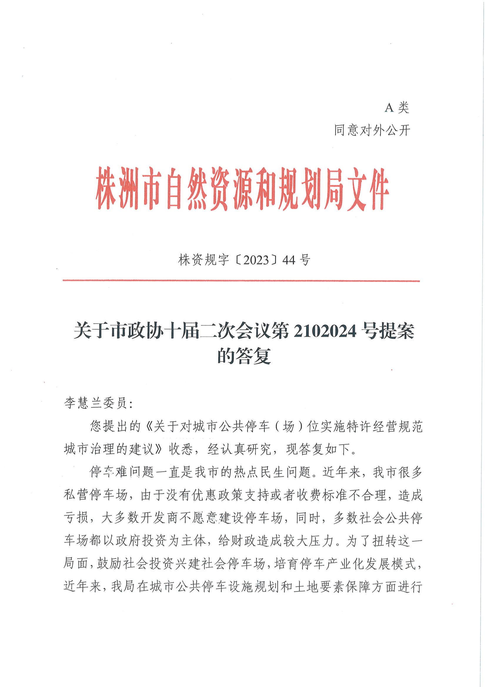 株资规字〔2023〕44号 关于市政协十届二次会议第2102024号提案的答复