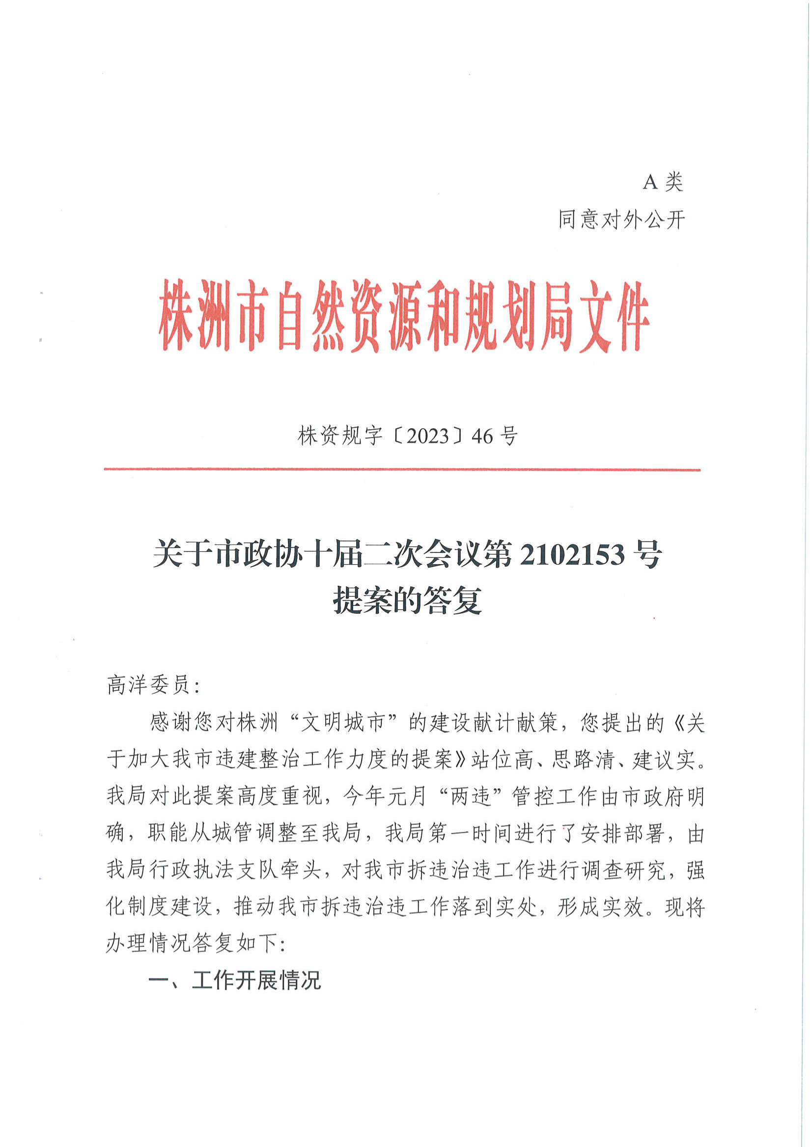 株资规字〔2023〕46号 关于市政协十届二次会议第2102153号提案的答复