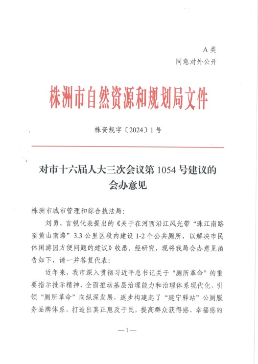 株资规字〔2024〕1号,对市十六届人大三次会议第1054号建议的会办意见