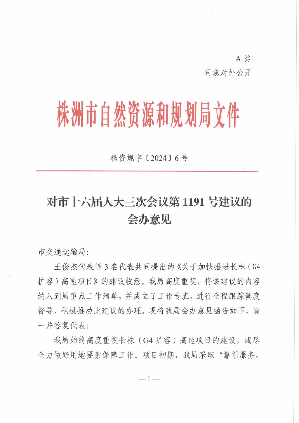 株资规字〔2024〕6号,对市十六届人大三次会议第1191号建议的会办意见