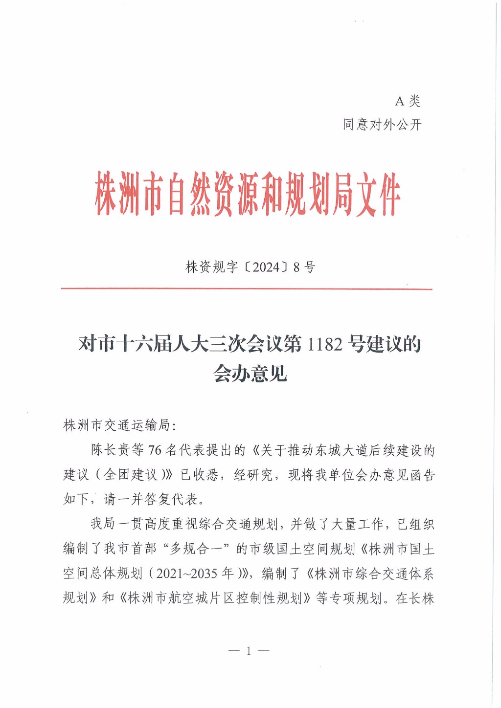 株资规字〔2024〕8号,对市十六届人大三次会议第1182号建议的会办意见