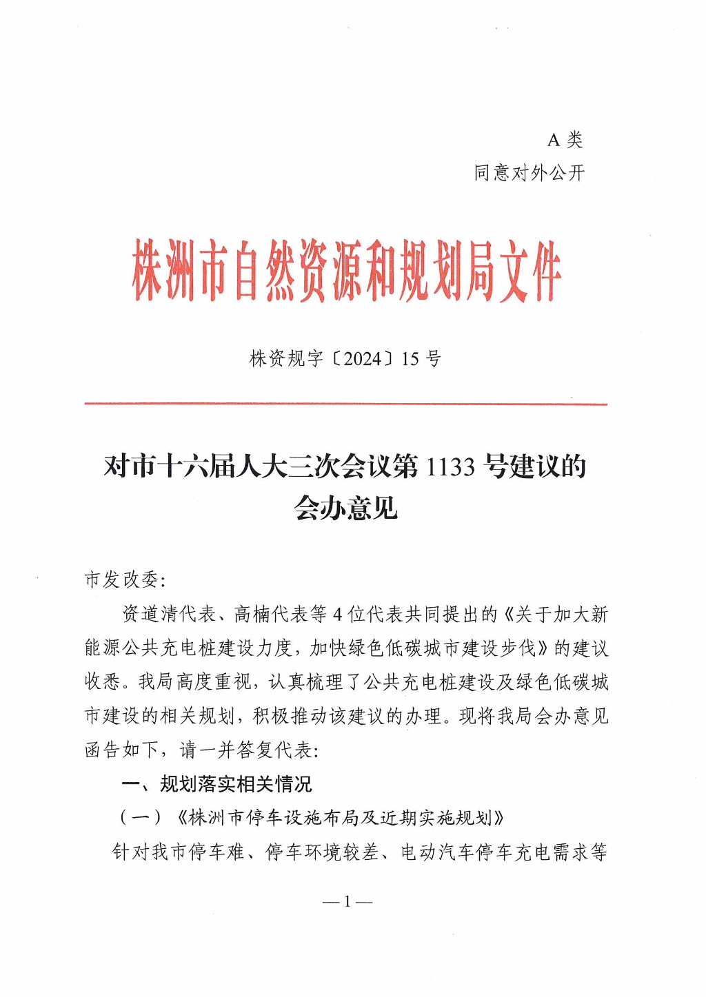 株资规字〔2024〕15号,对市十六届人大三次会议第1133号建议的会办意见