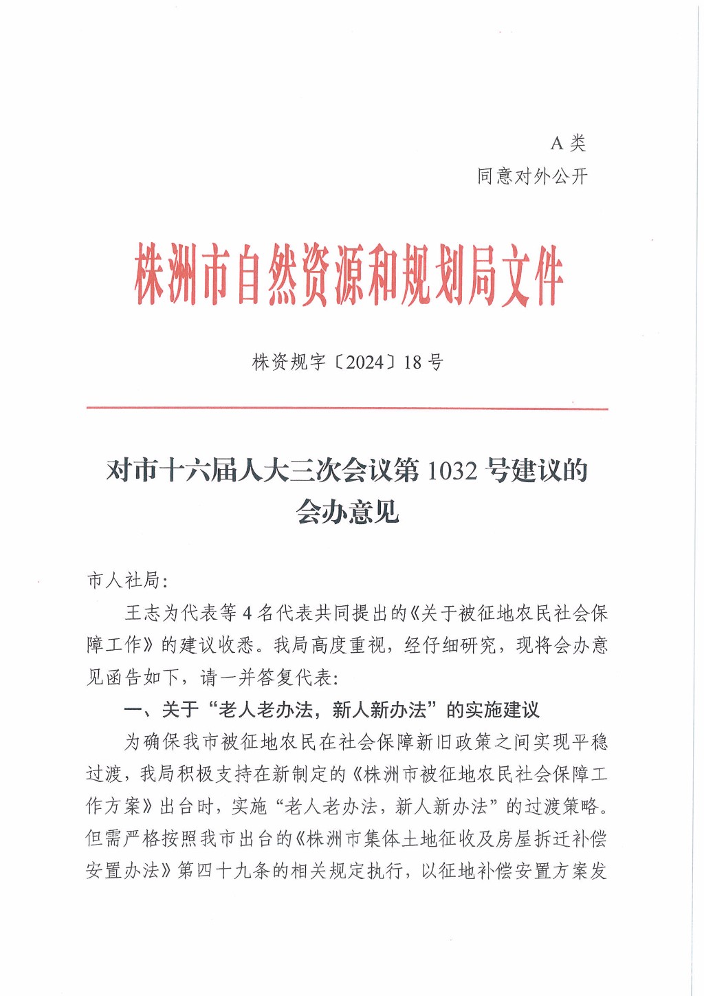 株资规字〔2024〕18号,对市十六届人大三次会议第1032号建议的会办意见