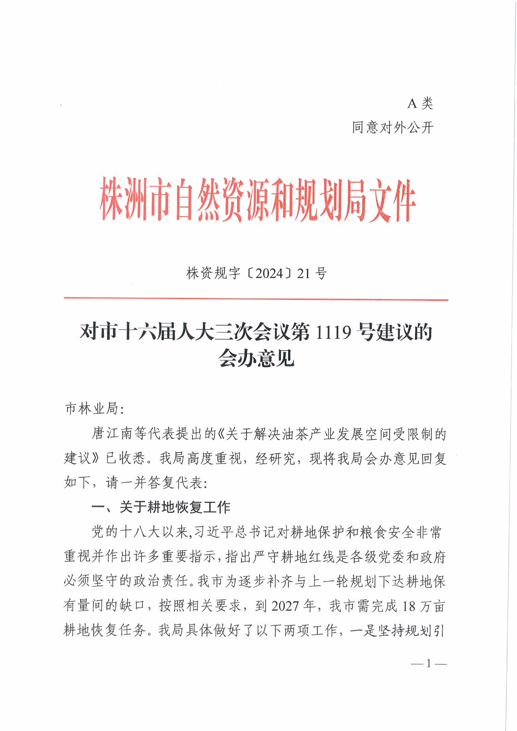 株资规字〔2024〕21号,对市十六届人大三次会议第1119号建议的会办意见