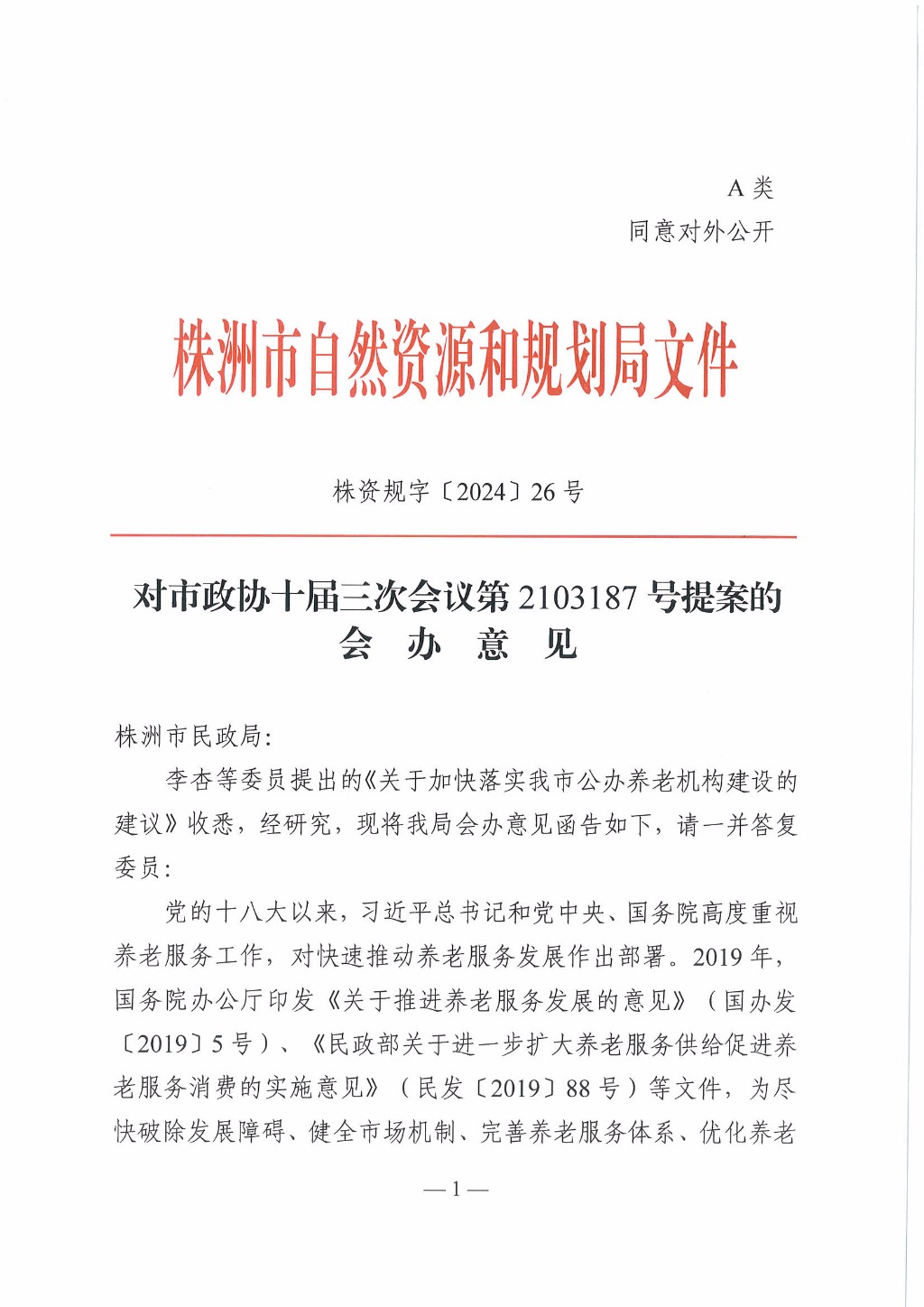 株资规字〔2024〕26号,对市政协十届三次会议第2103187号提案的会办意见