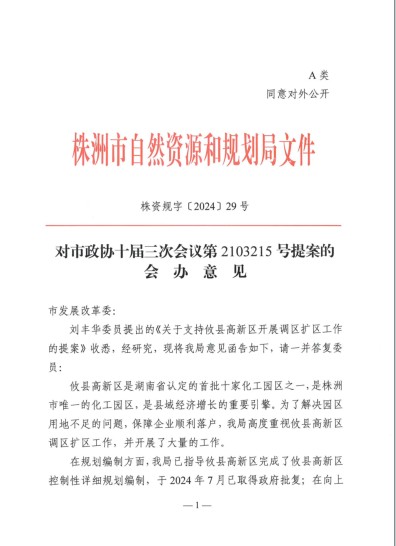 株资规字〔2024〕29号,对市政协十届三次会议第2103215号提案的会办意见