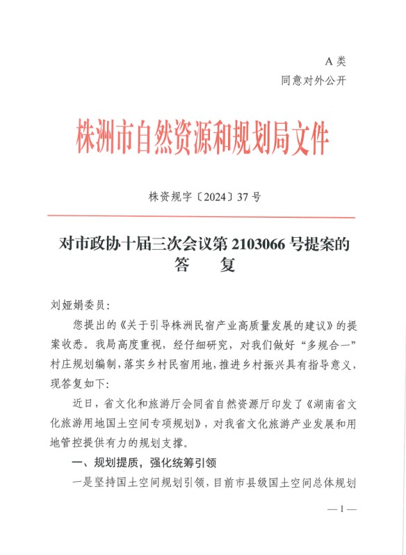 株资规字〔2024〕37号,对市政协十届三次会议第2103066号提案的答复