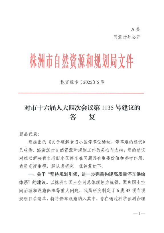 株资规字〔2025〕5号, 对市十六届人大四次会议第1135号建议的答复