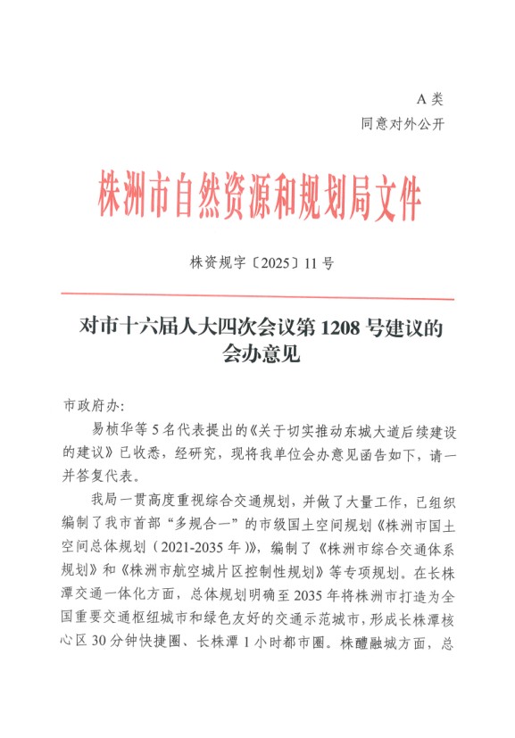 株资规字〔2025〕11号, 对市十六届人大四次会议第1208号建议的会办意见