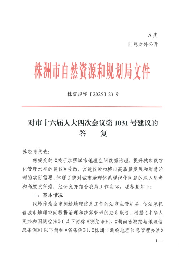 株资规字〔2025〕23号,对市十六届人大四次会议第1031号建议的答复