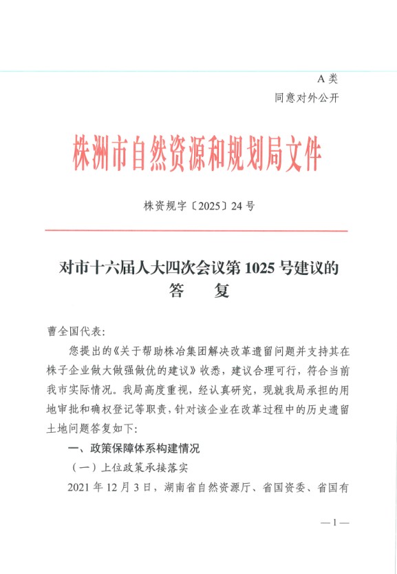 株资规字〔2025〕24号,对市十六届人大四次会议第1025号建议的答复