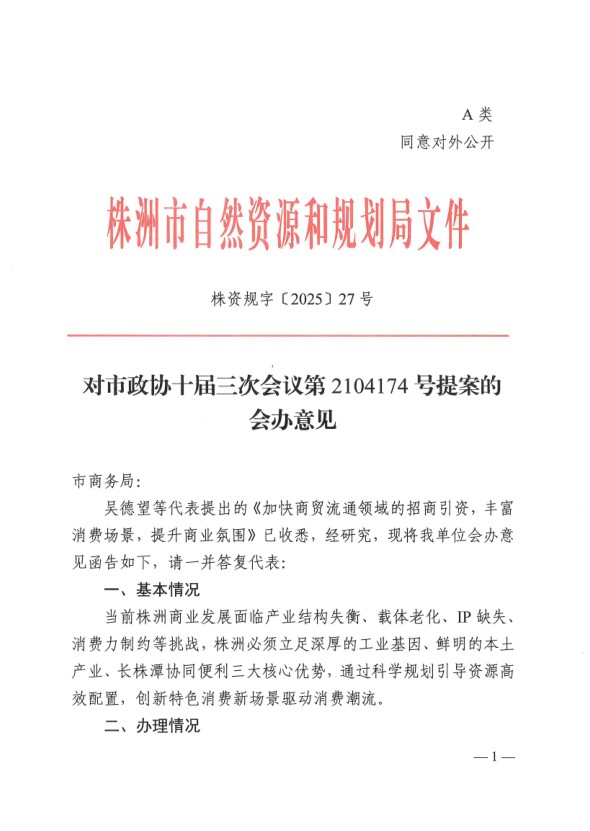 株资规字〔2025〕27号,对市政协十届三次会议第2104174号提案的会办意见