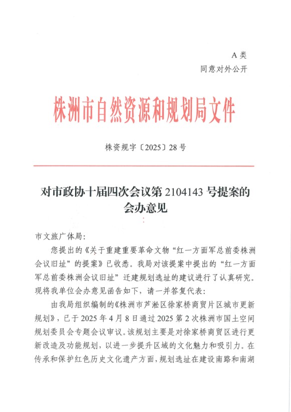 株资规字〔2025〕28号,对市政协十届四次会议第2104143号提案的会办意见