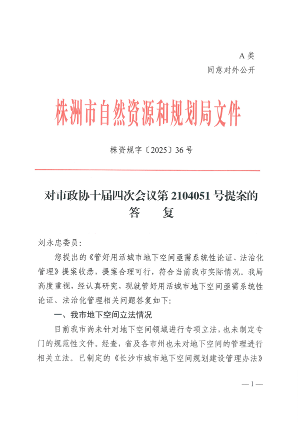 株资规字〔2025〕36号,对市政协十届四次会议第2104051号提案的答复