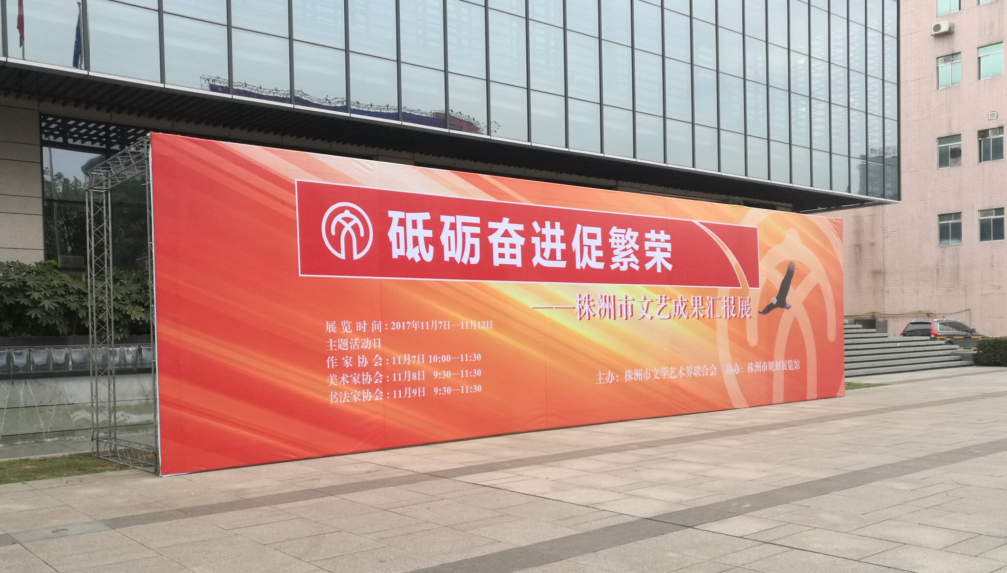 11月7日—11月12日,由株洲市文学艺术界联合会主办,株洲市规划展览馆协办的《砥砺奋进促繁荣——株洲市文艺成果汇报展》将在我馆一楼多功能展厅展出。