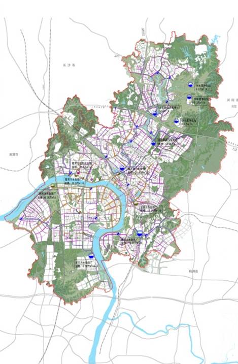1、规划期限与范围 本次规划范围为株洲市市区管辖范围,总面积535平方公里,天元区、芦淞区、石峰区、荷塘区和云龙示范区作为重点规划区域。 规划期限2010-2030年,近期至2015年,中期至2020年,远期至2030年。 2、规划目标 解决城市排水问题,更好的指导城市新区开发、旧城改造建设。 3、规划内容 ①雨水工程规划 本次规划于不满足受水体防洪标准的低洼地设置排渍泵站,其中河西片区各汇水流域均于入江口处设置一级排渍泵站。河东片区除对应各低排港道入湘江口处设一级排渍泵站,以各内港为受水体,无法满足对应防洪标准的区域设二级排渍泵站。较低的自排口处均设置涵闸,平时自排,暴雨时关闭涵闸,由水泵抽排入湘江。 ②污水工程规划 根据地势走向和污水管道重力流的特点,将株洲市规划区划分为八大污水汇流区域。株洲市污水处理厂目前处理规模为29.2万立方米/天,规划期末处理规模达到128.8万立方米/天。规划远期末,污水再生利用率按30%考虑,株洲市污水再生利用总量将达到35.64万立方米/天。 ③防洪工程规划 新城区防洪堤规划为:曲建保护圈堤防全长7.774公里,其中湘江右岸5.11公里,枫溪港左岸2.664公里;荷明保护圈全长19.631公里,其中湘江右岸4.292公里,白石港左岸4.631公里,建宁港7.986公里,枫溪港右岸2.722公里;清响田保护圈全长20.757公里,其中湘江右岸8.275公里,霞湾港8公里,白石港右岸4.482公里。