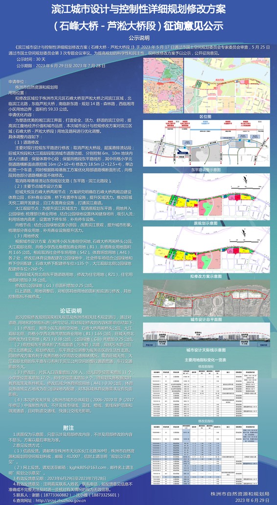 滨江城市设计与控制性详细规划修改方案(石峰大桥 - 芦淞大桥段)征询意见公示