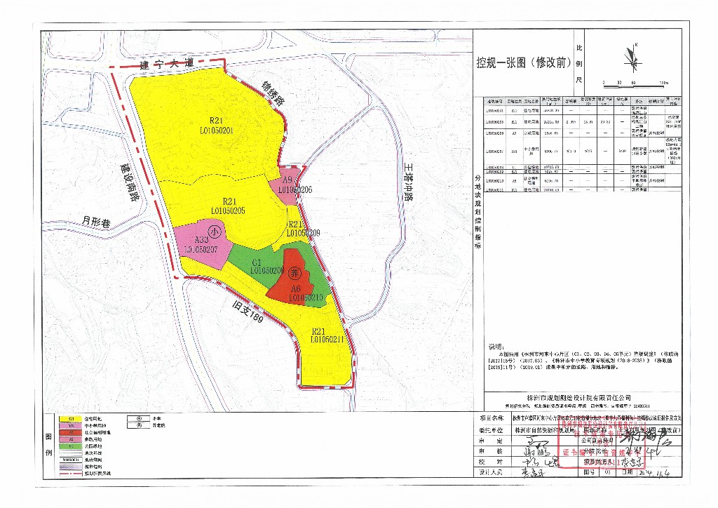6.公布内容:为便于宗地分割,根据该地块的用地权属界线,在地块南侧L01050207-1规划6米宽巷路,未改变城市道路交通结构,完善地块周边巷路,便于周边地块交通通行。将地块L01050207-1用地性质由中小学用地(A33)修改为商业用地(B1),用地面积为7510.72㎡,容积率≤2.0,建筑密度≤45%,建筑限高≤80米,绿地率≥20%;地块L01050207-2用地性质修改为住宅用地(R21),用地面积为491.10㎡;同步修正相关地块用地界线及面积,其他控制内容不作调整。备注:“地块L01050207-1须按程序进行收储挂牌出让”。