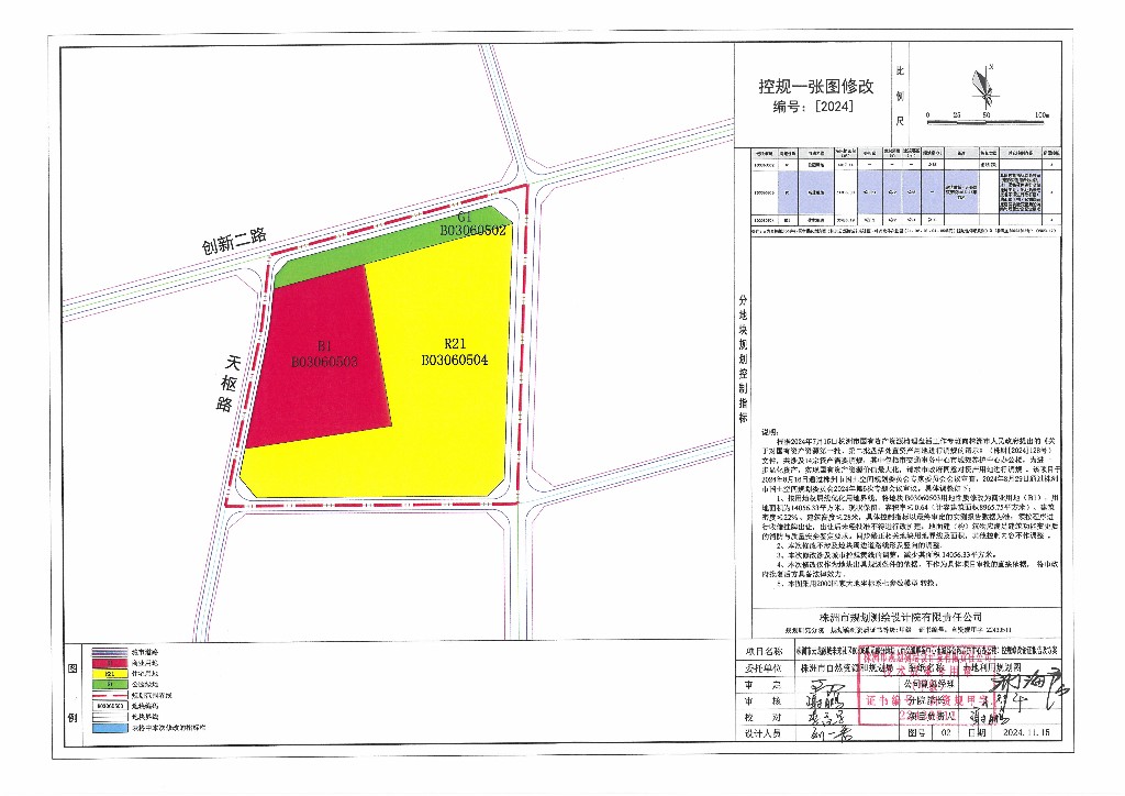 6.公布内容:按用地权属线优化用地界线,将地块B03060503用地性质修改为商业用地(B1),用地面积为14056.33平方米,现状保留,容积率≤0.64(计容建筑面积8965.75平方米)、建筑密度≤22%、建筑高度≤28米,具体控制指标以最终审定的实测报告数据为准。同步修正相关地块用地界线及面积,其他控制内容不作调整。备注:“地块B03060503须按程序进行收储挂牌出让,出让后未经批准不得进行改扩建;地面建(构)筑物应满足建筑功能变更后的消防与质量安全鉴定要求。”