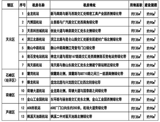 4.用地位置及范围:本次规划株洲市城区13处通信机房地块均位于株洲市主城区范围内,共涉及四个行政区,其中天元区7处,石峰区(经开区)2处,荷塘区2处,芦淞区2处。具体详见下表: