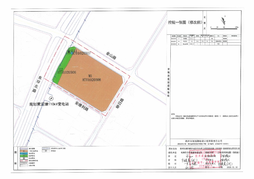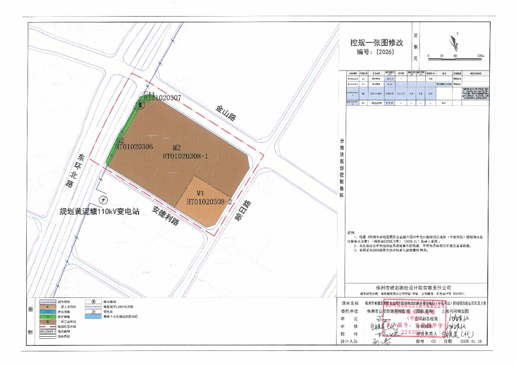 6.公布内容:支持企业发展,预留十米高压廊道,依用地权属优化地块界线,根据企业生产工艺,将地块HT01020308-1用地性质由一类工业用地(M1)恢复为二类工业用地(M2),用地面积为43358.51㎡,容积率0.8-2.0,建筑密度≥40%,建筑限高≤30米,绿地率≤15%。按现状给水泵站修正地块HT01020307用地位置,用地面积约27㎡,为现状保留。同步修正相关地块用地界线及面积,其他控制内容不作调整。备注:“项目审批前应按要求完成项目环评,并取得生态环保部门批复后方可实施;建筑退后距离应满足电力专项规划、株洲市国土空间规划管理技术规定相关要求。”