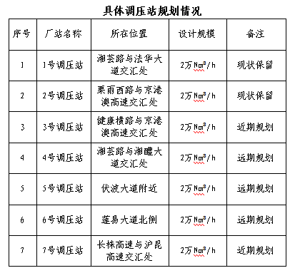 规划期内保留已建的4座天然气门站,近期规划1座天然气门站,远期规划1座天然气门站。