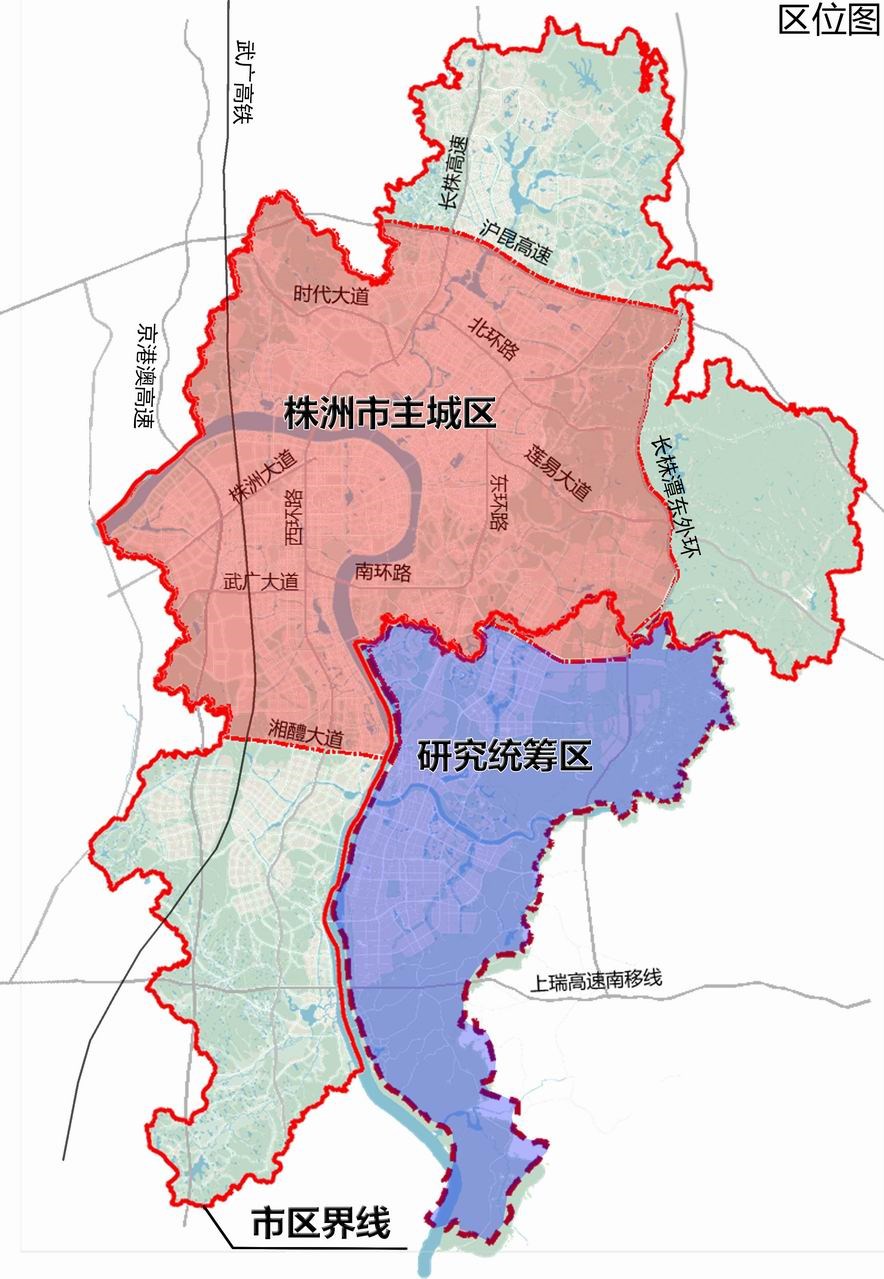市区规划范围为株洲市行政管辖范围,包含天元区、石峰区、芦淞区、荷塘区及云龙示范区,总面积约为864平方公里。