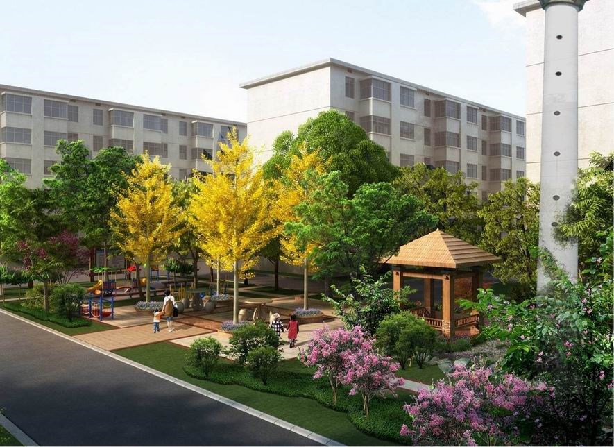 通过“三供一业”改造、居住区改造工程等项目建设,打造产城互融的共享开放式社区环境。“三供一业”改造项目对规划区内老旧小区进行手术式修补更新,进行环境治理、房屋修缮、设施完善,打造“环境整洁、舒适宜居、功能齐全”的生活小区。居住区改造工程主要为棚户区改造项目及其配套住宅开发建设项目,采用现代简约与苏式建筑相结合的建筑风格,提升规划区居住品质,改善居民居住条件及环境。
