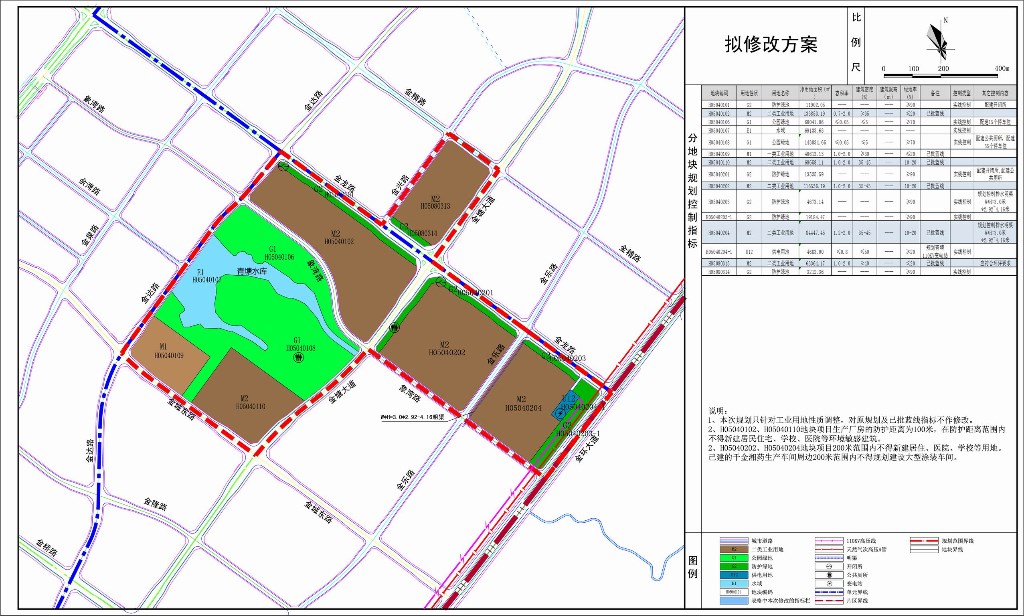 重点以轨道交通配套和先进硬质新材料产业为主,生物医药及装配式建筑产业等为辅。根据环保及规划相关要求,涉及轨道交通配套、先进硬质新材料、生物医药及装配式建筑等产业项目属于二类工业用地,由于金山工业园规划二类工业用地不足,无法满足相关产业项目落地。为顺利推进相关产业项目落地建设,形成特色产业聚集区,拟将金山工业园H05040102、H05040110、 H05040202、H05040204 、H05080313等五个地块由一类工业用地(M1)修改为二类工业用地(M2)。