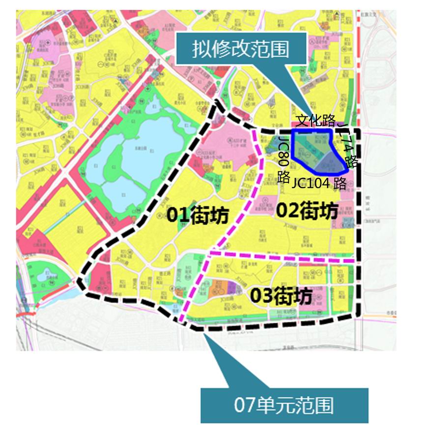 本次拟修改的范围位于株洲市荷塘区旧城片区07单元02街坊部分地块,西起JC80路,东至JC74路,南起JC104路,北至文化路,面积为6.64公顷。