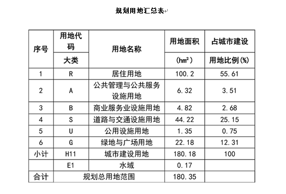 4 用地功能布局 规划区总用地面积180.35公顷,其中总建设用地为180.18公顷。 新用地规划图 原土地利用规划图 (1) 居住用地规划(R类) ① 规划二类居住用地面积为100.20公顷。 ② 居住区配套设施包括: 规划设置一处社区服务中心,位于规划150路与黄山西路口西北侧,面积为0.83公顷;