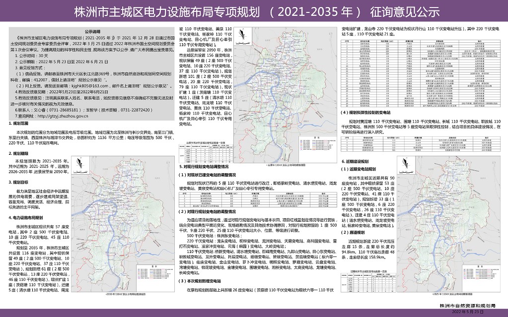 株洲市主城区电力设施布局专项规划(2021-2035)征询意见公示