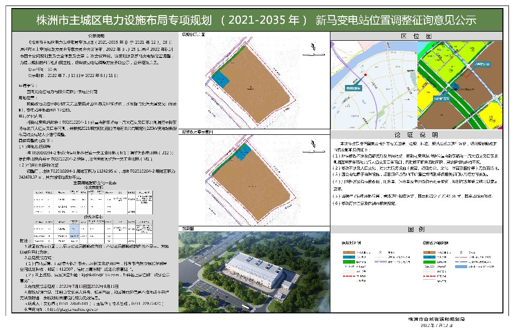 株洲市主城区电力设施布局专项规划(2021-2035年)新马变电站位置调整征询意见公示