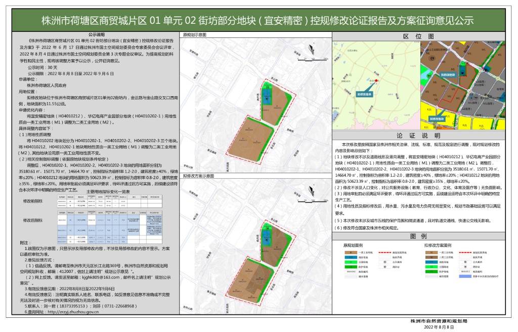 株洲市荷塘区商贸城片区01单元02街坊部分地块(宜安精密)控规修改论证报告及方案征询意见公示