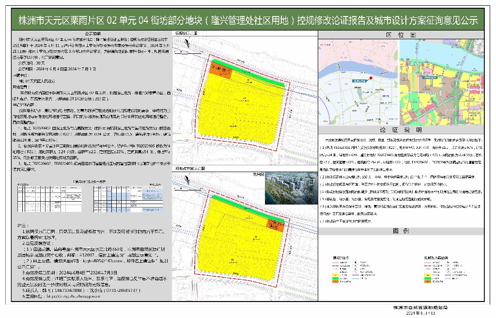 《株洲市天元区栗雨片区02单元04街坊部分地块(隆兴管理处社区用地)控规修改论证报告及城市设计方案》征询意见公示