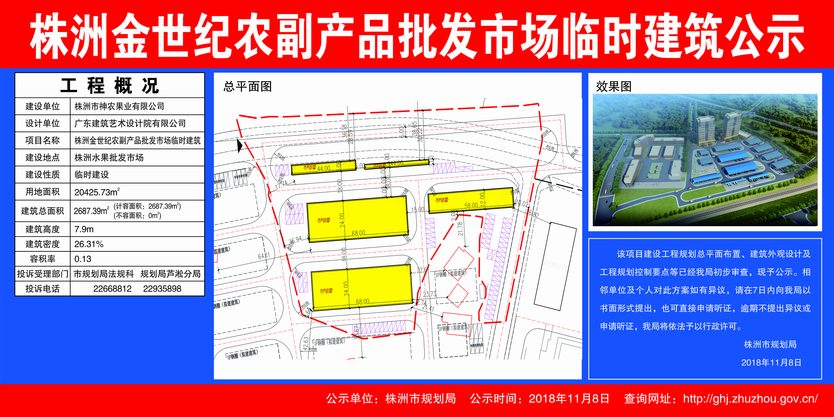 株洲金世纪农副产品批发市场临时建筑批前公示