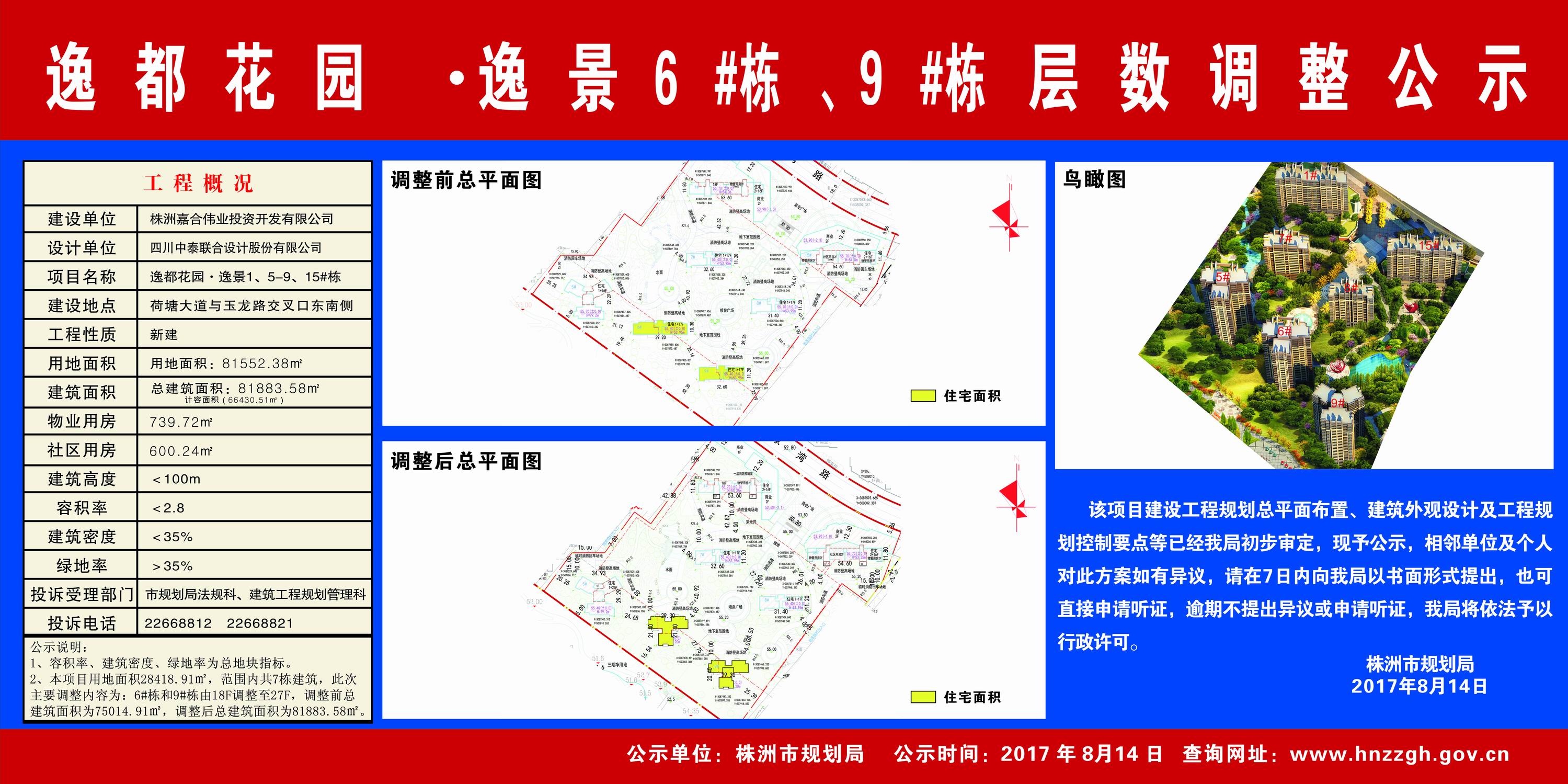 株洲嘉合伟业投资开发有限公司(逸都花园·逸景6#栋、9#栋调整公示)