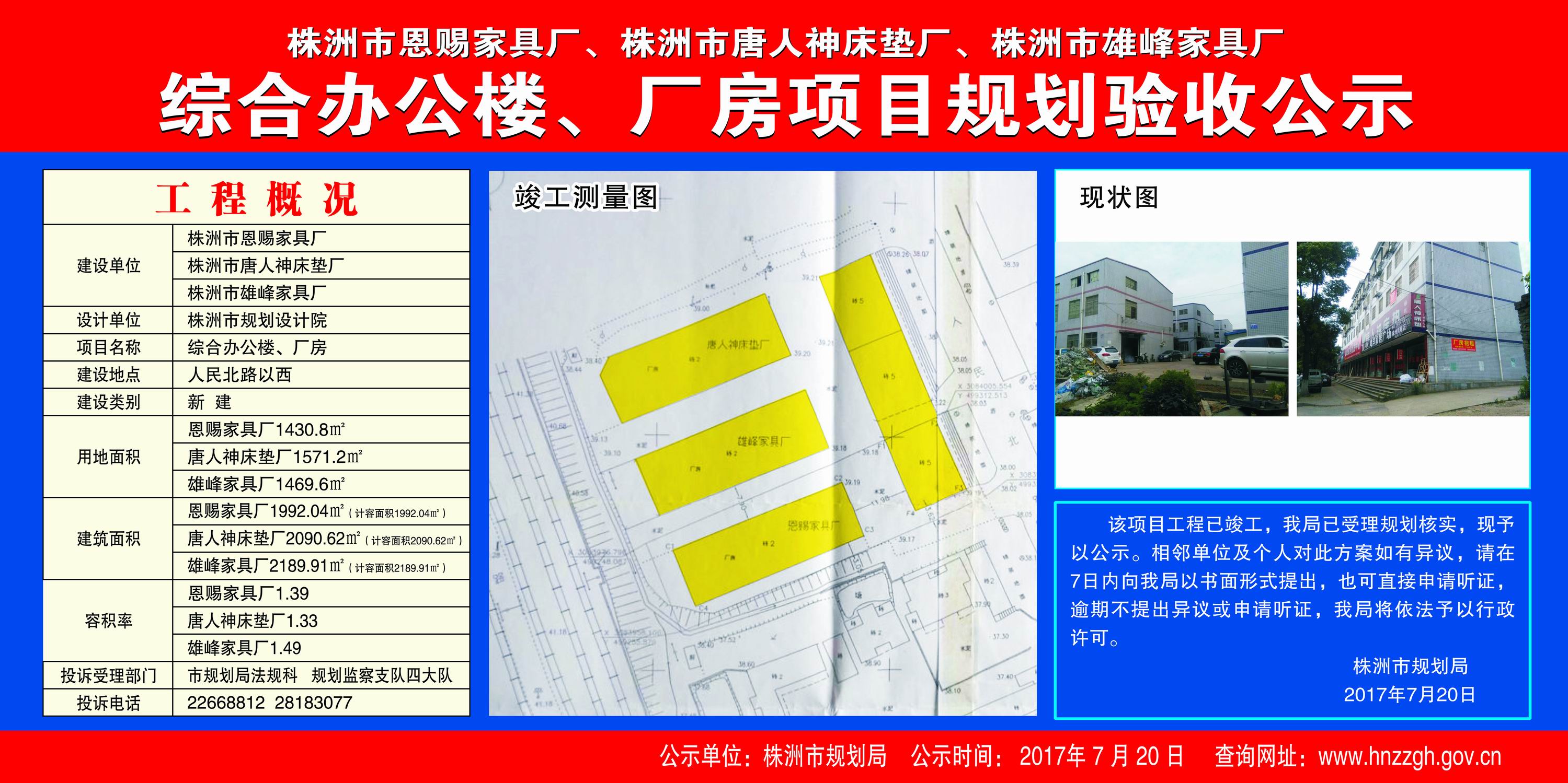 株洲市恩赐家具厂、株洲市唐人神床垫厂、株洲市雄峰家具厂(综合办公楼、厂房)