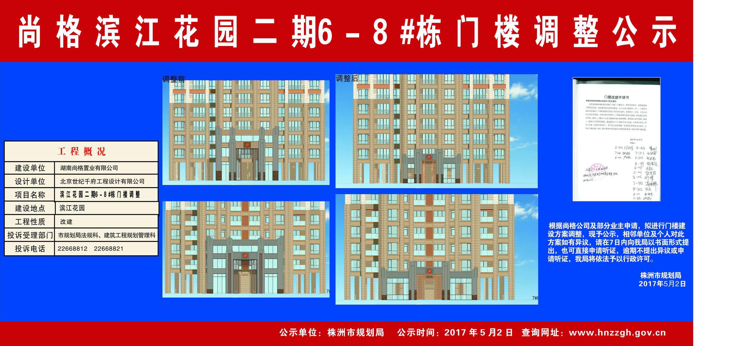 湖南尚格置业有限公司(滨江花园二期6-8#栋门楼调整)